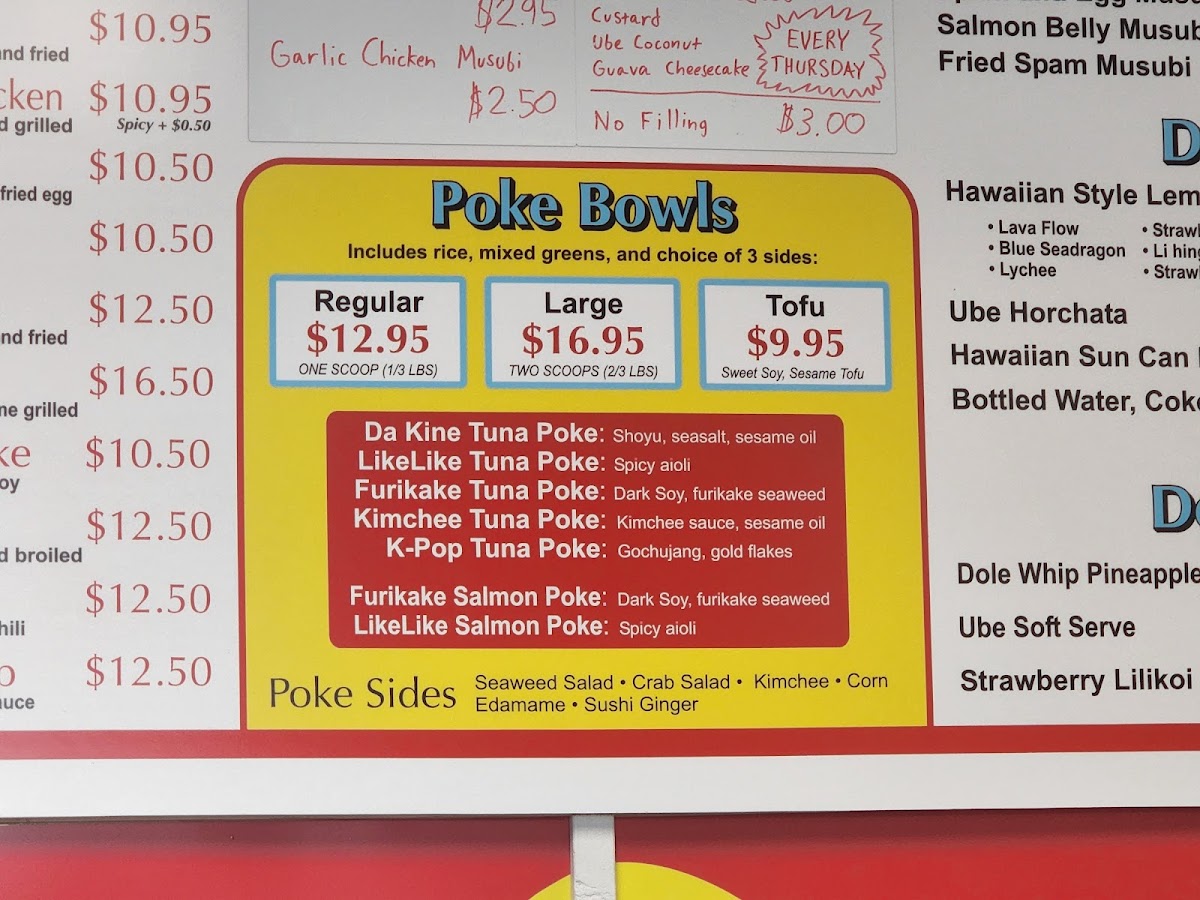 Includes sides like Mac Salad, Shoyu Broccoli, or Extra Greens.